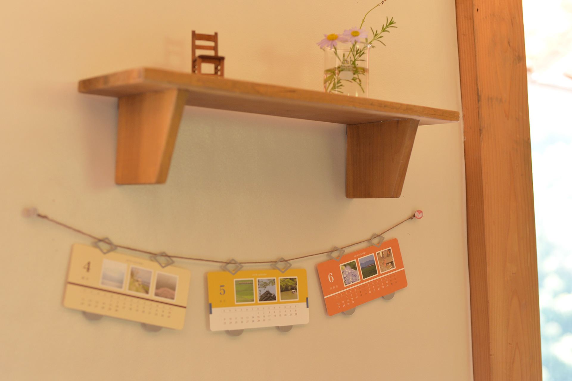 クライアントである一畑電車さんより、「従来のものとは違うタイプのカレンダーを作り、女性をターゲットに販売したい」というご依頼があり、電車をかたどったカレンダーを製作しました。 実際に松江~出雲間を走っている車両をモチーフに、3種類の電車を製作。パンタグラフの部分にひもを通し、画びょうで留めて飾っていただくデザインです。 画びょうは、ひとつひとつくらしアトリエスタッフが手づくりしました。 2017年 島根広告賞 SP部門金賞受賞