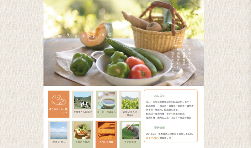 松江市で、有機食材や地元産の野菜などを宅配している団体のウェブサイトです。