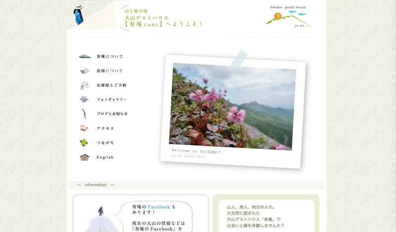 鳥取県の大山のふもとにあるゲストハウスのウェブサイトです。